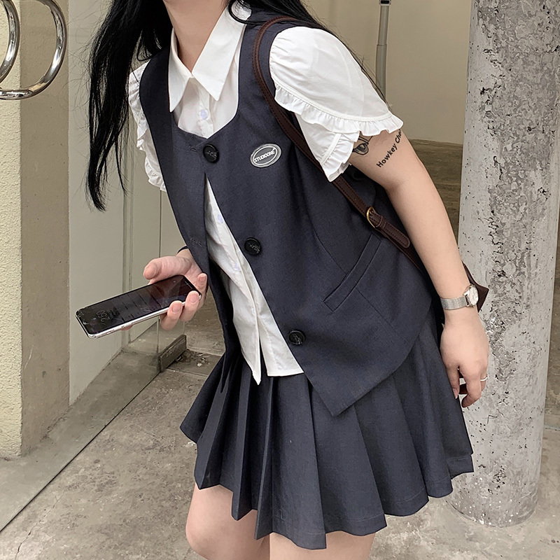 早秋女裝韓版簡約百搭寬松學生翻領排扣襯衫